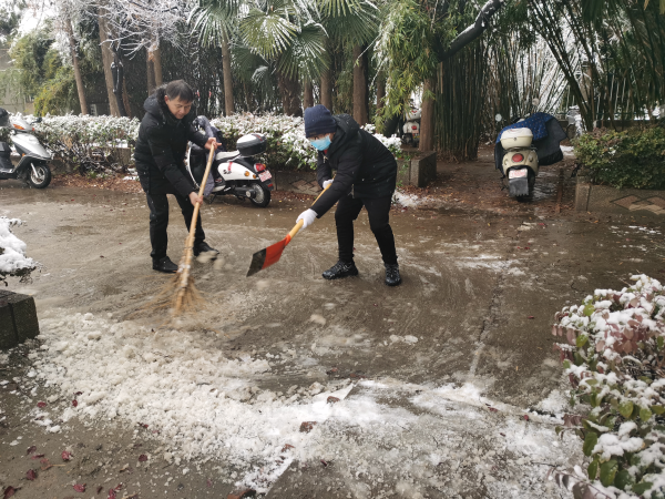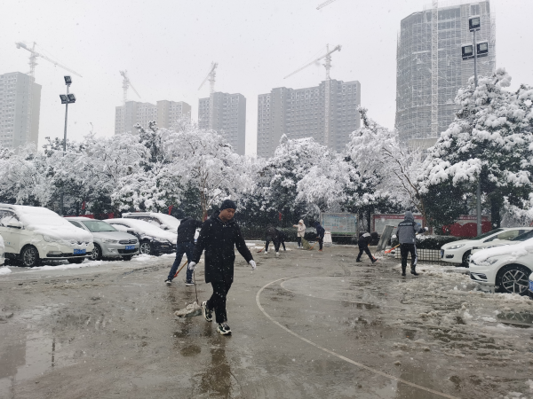 7日一大早,各辦公區及生產廠區在班人員在部門領導帶領下一同投身到掃雪行動中,雖然雪積得比較厚,天氣比較冷,但這一切絲毫沒有影響大家的勞動熱情。大家手持鐵鍬和掃把,齊心協力,配合默契,有的鏟、有的推、有的掃、干得熱火朝天,忙碌的身影在皚皚白雪中構成了一道亮麗的風景線。經過大家的一個多小時的努力,各辦公區、營業廳及水廠主要出入口、主要干道等處積雪被全部鏟除、掃凈,確保了道路通暢,為生產安全和人員出行掃清了障礙。