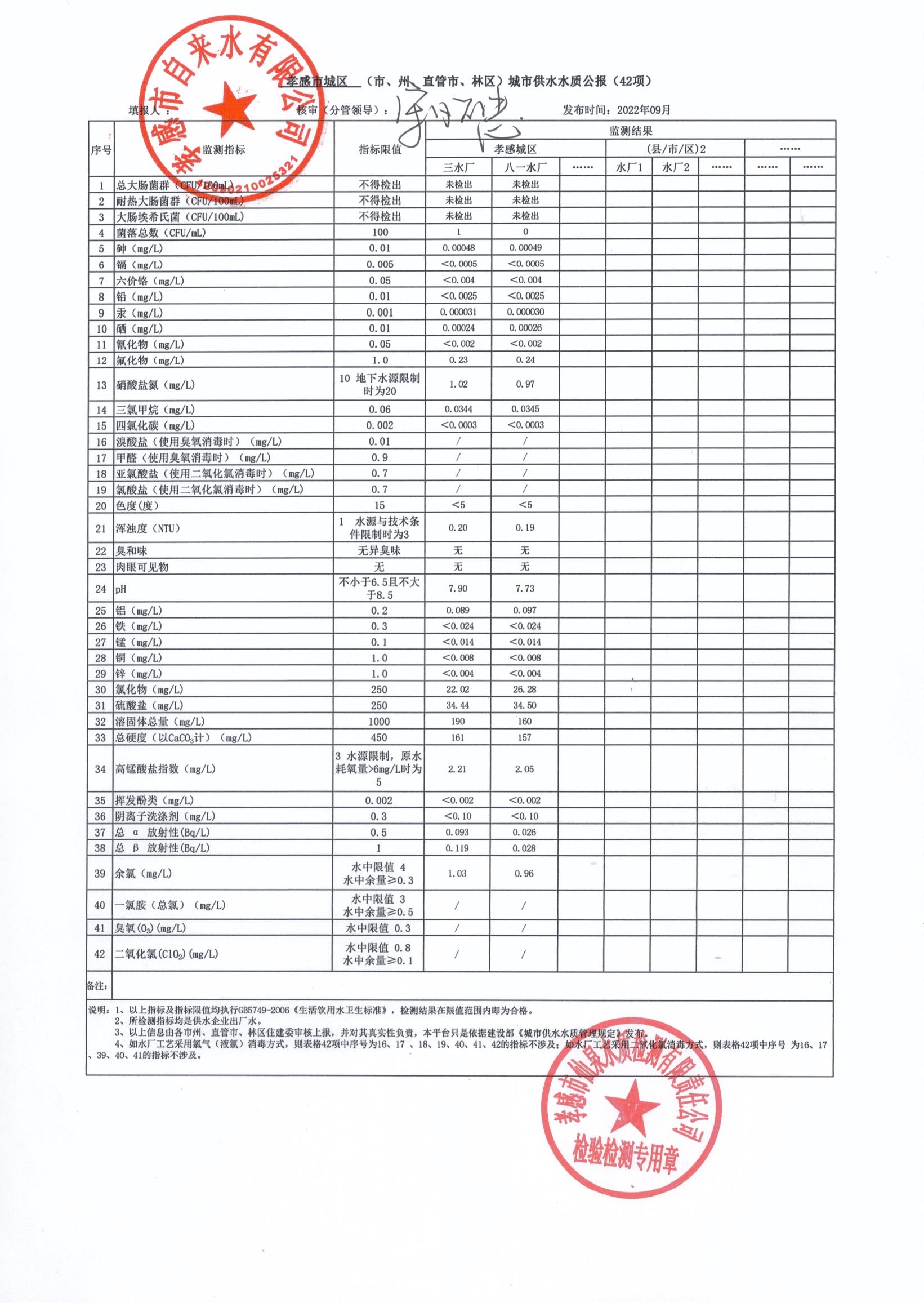 2022年9月水質(zhì)報(bào)告