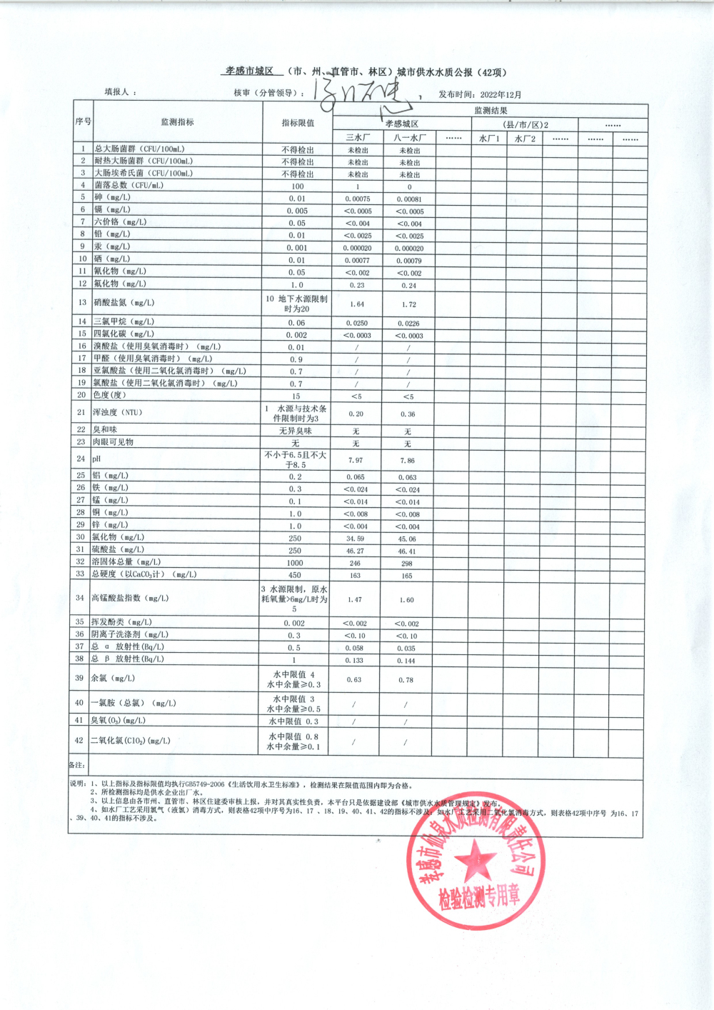 2022年12月水質(zhì)報(bào)告