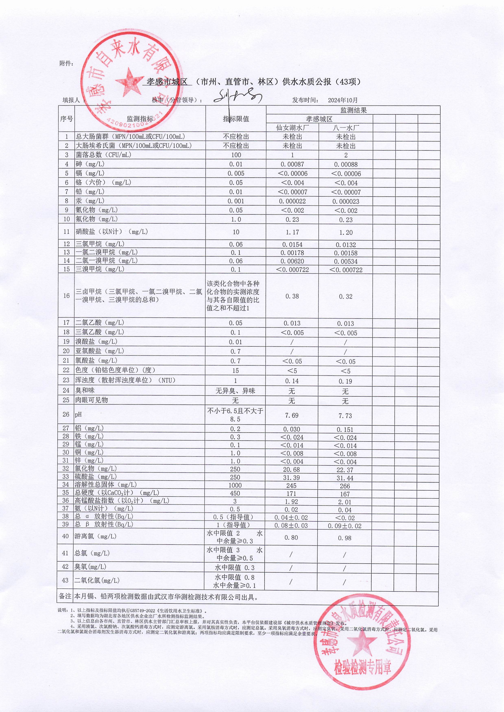 2024年10月水質(zhì)報告