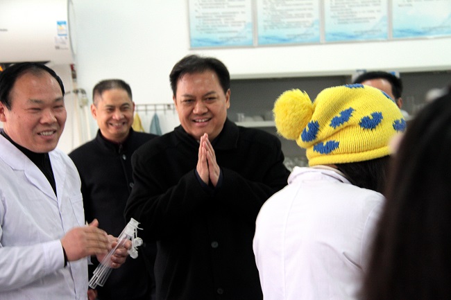 來到位于城郊的三水廠,潘啟勝與值班崗位上的干部職工一一握手,向大家致以新春問候。他特地走進水質監測站化驗室,看望正在緊張工作中的化驗人員,與大家親切交談,詢問水質檢測能力與水質合格率等情況,并勉勵大家堅守崗位、辛勤工作,把好水質關,讓廣大市民度過一個祥和歡樂的新春佳節。