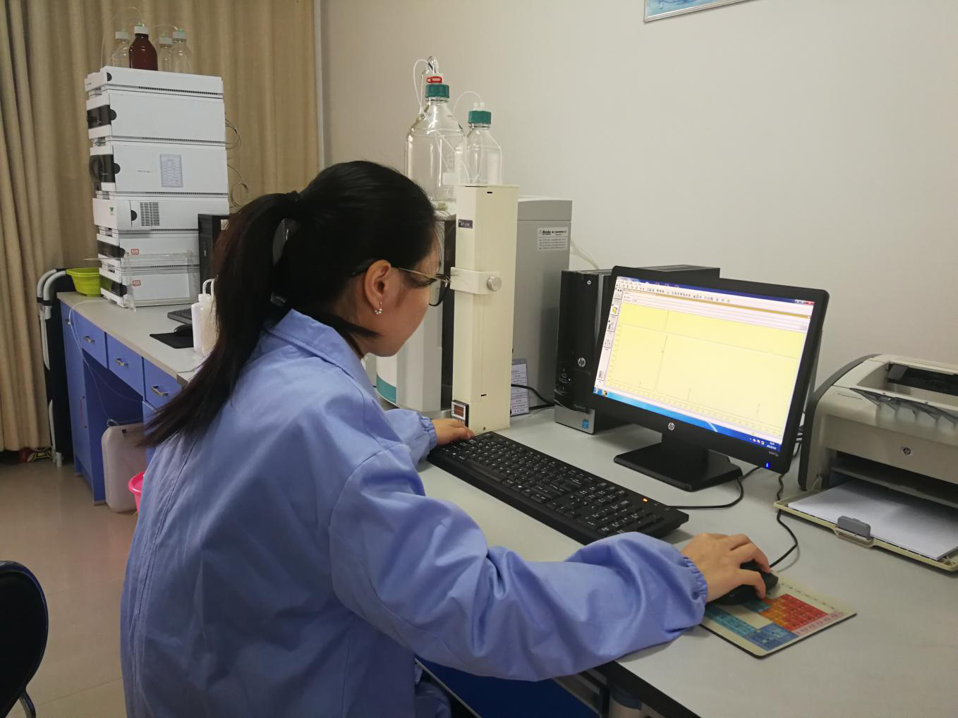 水質(zhì)檢測是安全供水的前提,更是安全供水的基礎。2015年,公司組建了仙泉水質(zhì)檢測有限責任公司,投入大量資金購買原子吸收分光光度計、原子熒光光度計、氣相色譜儀、離子色譜儀等專業(yè)儀器設備,承擔公司出廠水、源水水質(zhì)日檢、半月檢、月檢及年檢等相關水質(zhì)檢測工作。通過對水質(zhì)的濁度、PH值,余氯等指標數(shù)據(jù)監(jiān)測結(jié)果與水質(zhì)在線檢測儀比對數(shù)值,時刻掌握數(shù)據(jù)變化趨勢,加強對出廠水的常規(guī)檢測頻次,密切關注水質(zhì)變化,全力保證水質(zhì)安全。