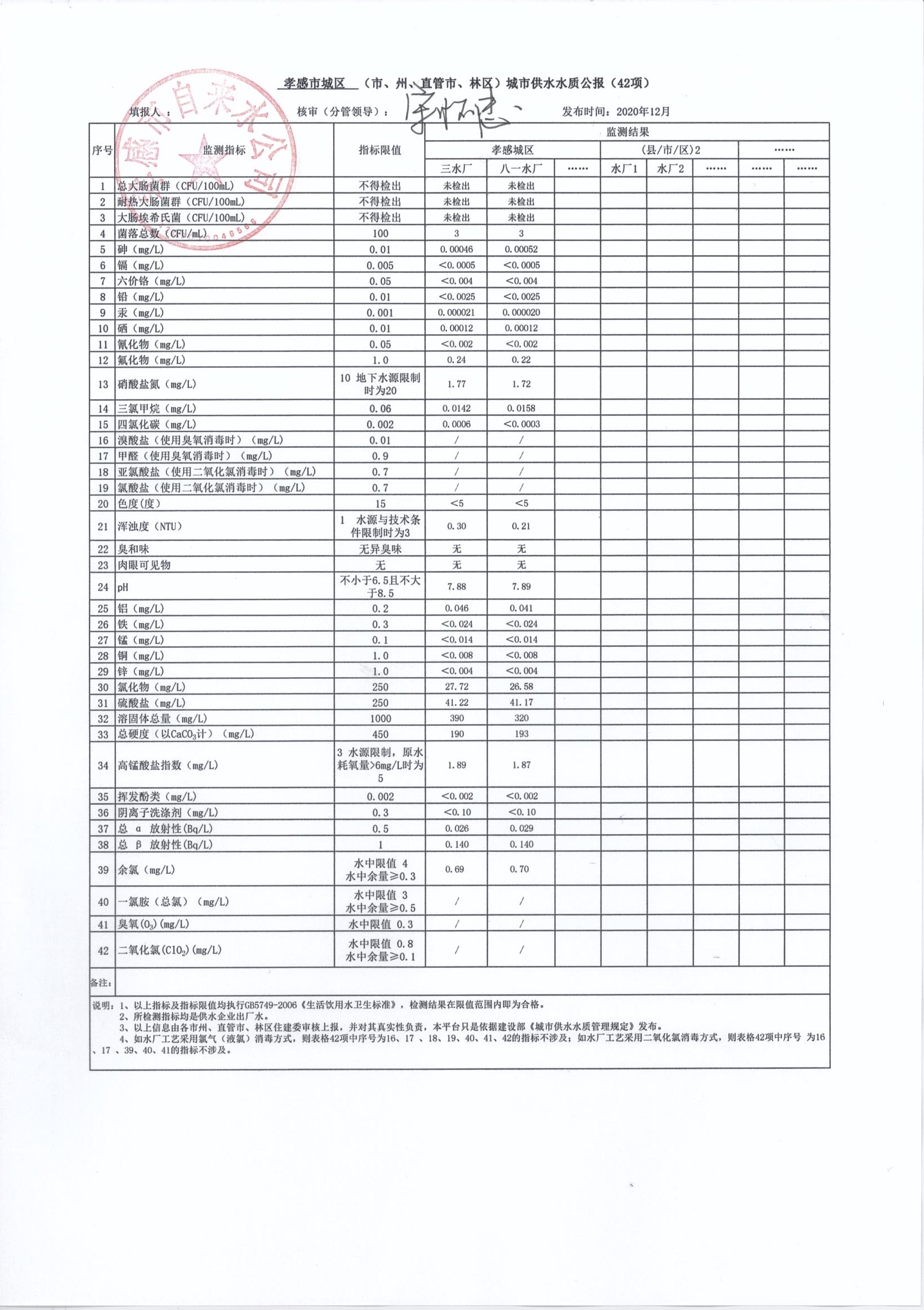 2020年12月水質報告