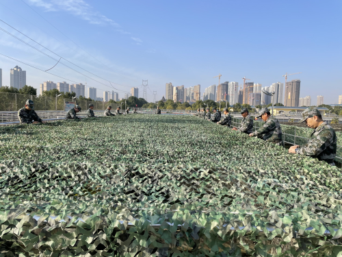 上午9點30分,隨著一聲急促的防空警報聲響起,由我公司21名民兵組成的水廠專業(yè)隊隊員在隊長的口令下整頓稍息,迅速前往三水廠重點防護區(qū)域進行偽裝防護。只見21名隊員身著統(tǒng)一訓(xùn)練服,動作整齊劃一,在規(guī)定時間內(nèi),迅速將偽裝網(wǎng)覆蓋在水廠絮凝池上方,圓滿完成此次偽裝防護工作。隨后,消防車、救護車、搶修車等車輛依次進場,對水廠遭空襲的重要部位進行搶險搶修并對受傷人員進行緊急救助,在多方配合下,此次演練圓滿完成。
