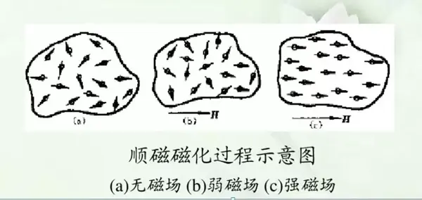 順磁性物質:在磁場作用下產生與外磁場相同的附加磁場,可理解為使原有磁場小小增強。如堿金屬或堿土金屬(鋰(Li)、鈉(Na)、鉀(K)、鎂(Mg)、鈣(Ca)、鍶(Sr)也都是順磁性的。稀土金屬也是順磁性。鈦(Ti)、釩(V)、鉻(Cr)、錳(Mn)等過渡族元素屬于順磁性。三價金屬鋁(Al)也是順磁性。