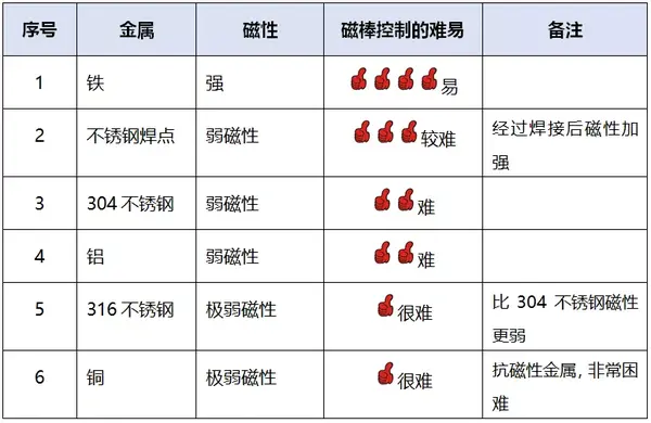 對于304不銹鋼及其焊點尤其關注到底使用磁棒能否將其吸附?